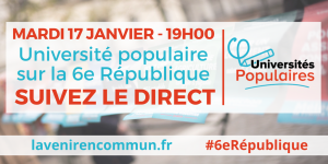 Nous inaugurons cette semaine de nouvelles séances pour les universités populaires de la France insoumise ! Elles seront centrées sur les mesures contenues dans notre programme, l’Avenir en commun et reprendront les thèmes évoqués dans les 7 chapitres de ce livre. L’objectif de ces séances est de permettre à tou·te·s les insoumis·es qui souhaitent convaincre et argumenter autour … Lire la suite de Universités populaires : le programme à la loupe !