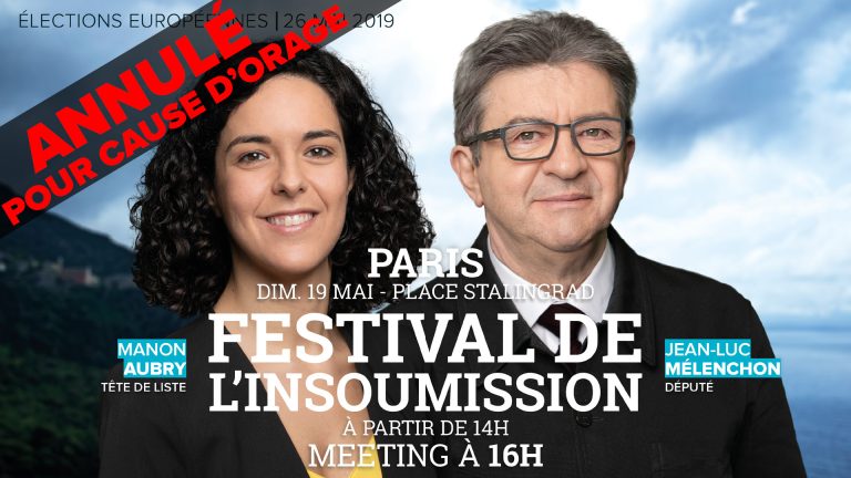 Attention, article mis à jour le 18 mai suite aux orages prévus durant l’événement (lire ci-dessous). Météo France prévoit un orage sur Paris à l’heure du rassemblement du Festival de l’insoumission prévu ce dimanche 19 mai. Au vu de ce qu’a été l’orage de ce soir, nous sommes contraints d’annuler le festival prévu place Stalingrad. En effet, … Lire la suite de [Annulé] Festival de l’insoumission à Paris
