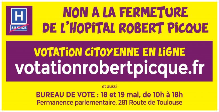 Du 30 avril au 24 mai j’ai organisé avec l’aide des collectifs, associations et citoyen.ne.s engagés dans la défense de notre service public de santé une votation citoyenne d’une ampleur inédite pour le maintien de l’hôpital Robert Picqué. Alors que depuis le début le projet BAHIA se construit dans la plus grande opacité et sans consultation … Lire la suite de 2000 personnes ont voté pour le maintien de l’hôpital Robert Picqué !