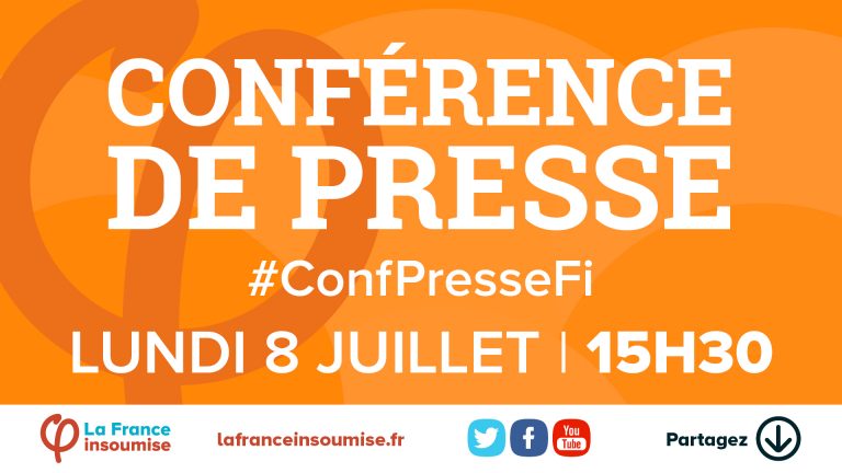 https://www.youtube.com/watch?v=kAMAi0NNcc8 Retrouvez la conférence de presse de La France insoumise du lundi 8 juillet qui portait notamment sur la nouvelle organisation du mouvement, les AMFiS d’été 2019 et la campagne contre la privatisation des Aéroports de Paris. Plus d’informations sur les évolutions du mouvement à cette adresse.