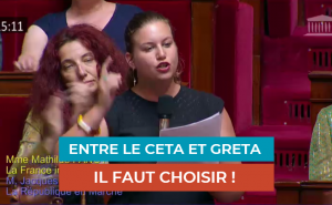 « Comment osez-vous applaudir les jeunes pour le climat et le même jour voter cet accord de libre-échange avec le Canada ? Ce jour symbolique dévoilera le vrai visage de ceux qui y sont favorables. Celles d’imposteurs qui disent faire de l’écologie, mais font surtout plaisir aux lobbys. » Ma question au gouvernement sur le CETA.
