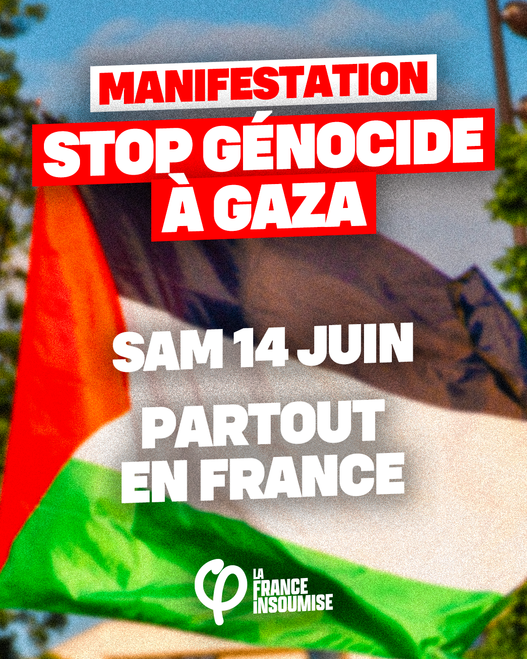 Stop Génocide à Gaza ! Manifestations partout en France le 14 juin