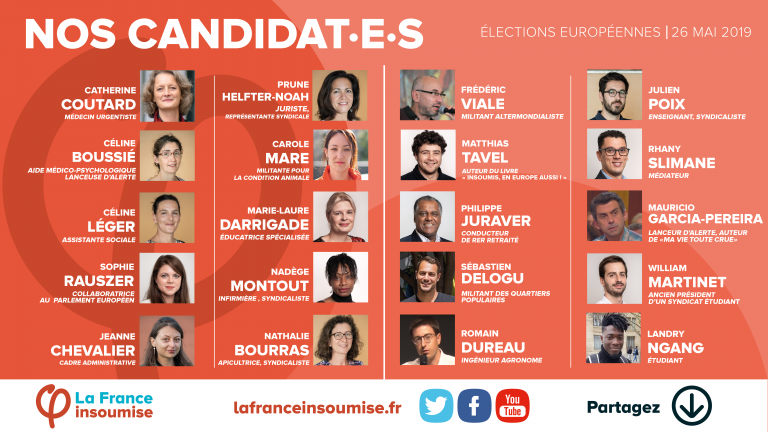 Une première série de 20 candidat·e·s de la liste de la France insoumise aux élections européennes !